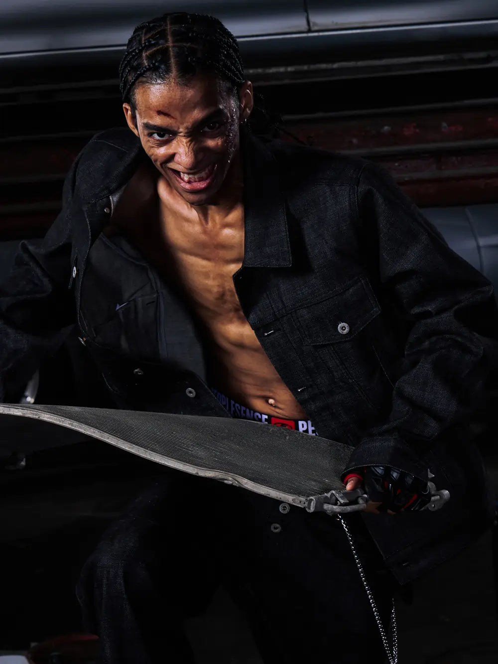 A design language of collision.Tire marks,oil stains,and deliberate distress are declarations against order.
